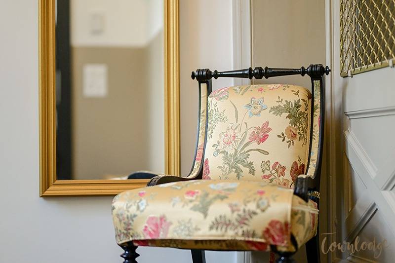 Master-Bedroom im Obergeschoss mt Blick zur historischen Rosette